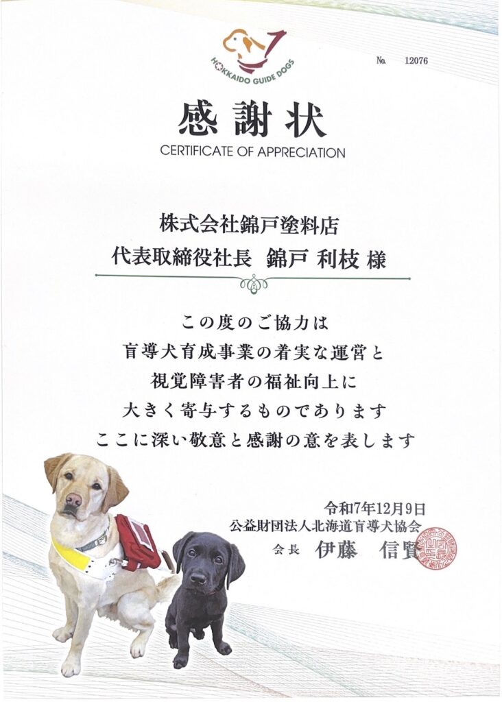 盲導犬協会感謝状をいただきました。