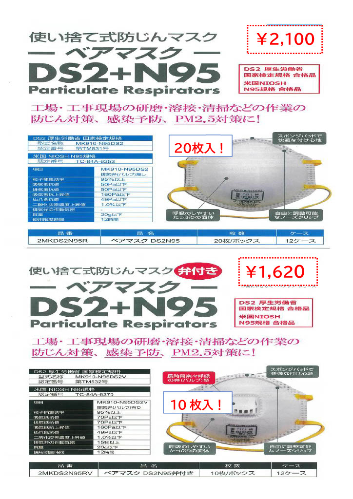ベアマスクDS2+N95 弁付き・弁なし