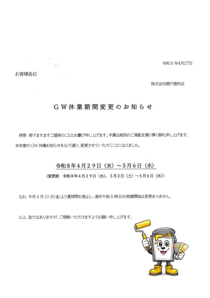 GW休業期間変更のお知らせ